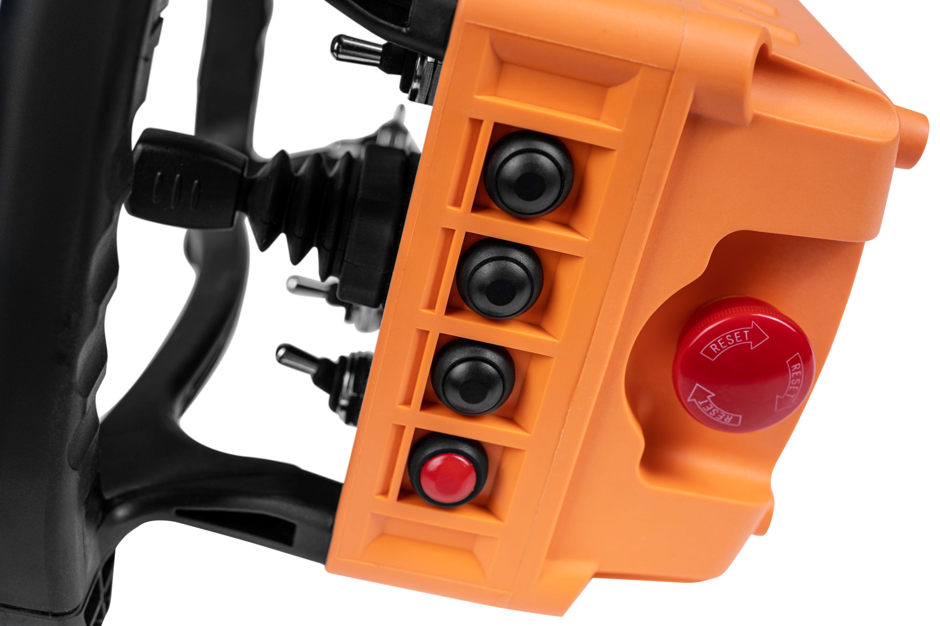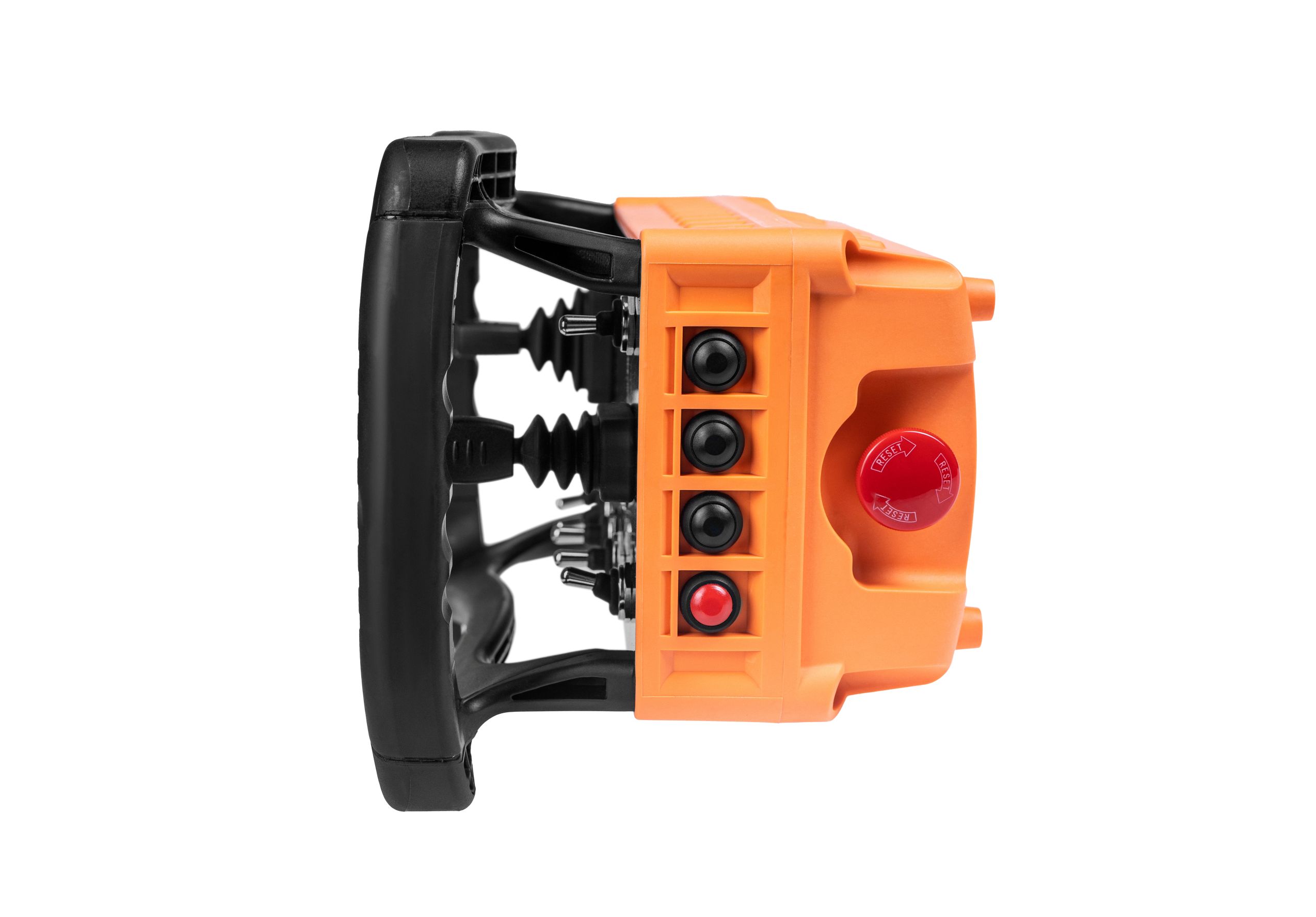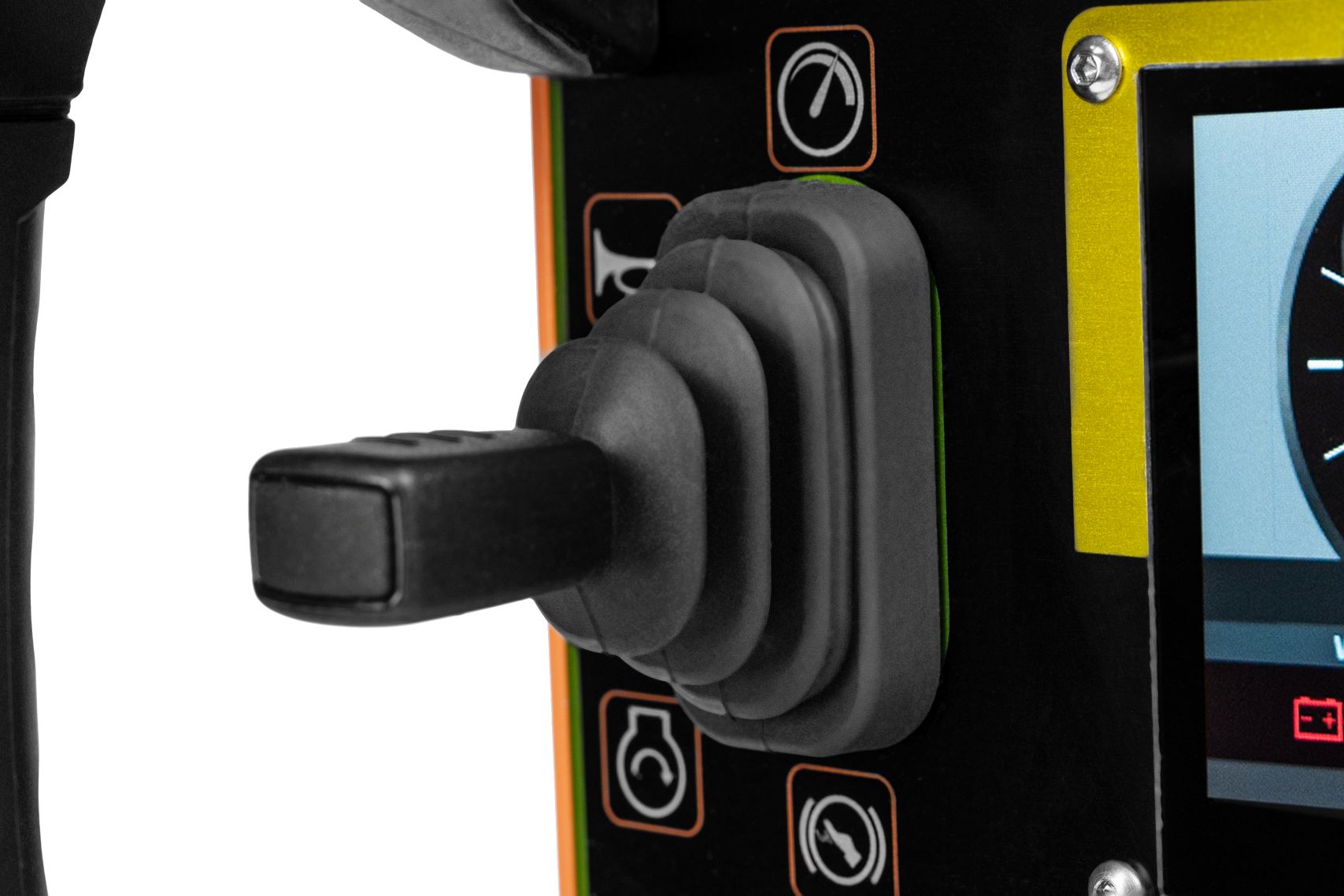 предназначен для управления автомобильной техникой и отображает ключевые параметры шины CAN автомобиля. На передней панели расположены два линейных джойстика: один для управления педалью газа и тормоза, другой — для поворота колес влево и вправо. Кроме того, пульт позволяет переключать режимы автоматической коробки передач.