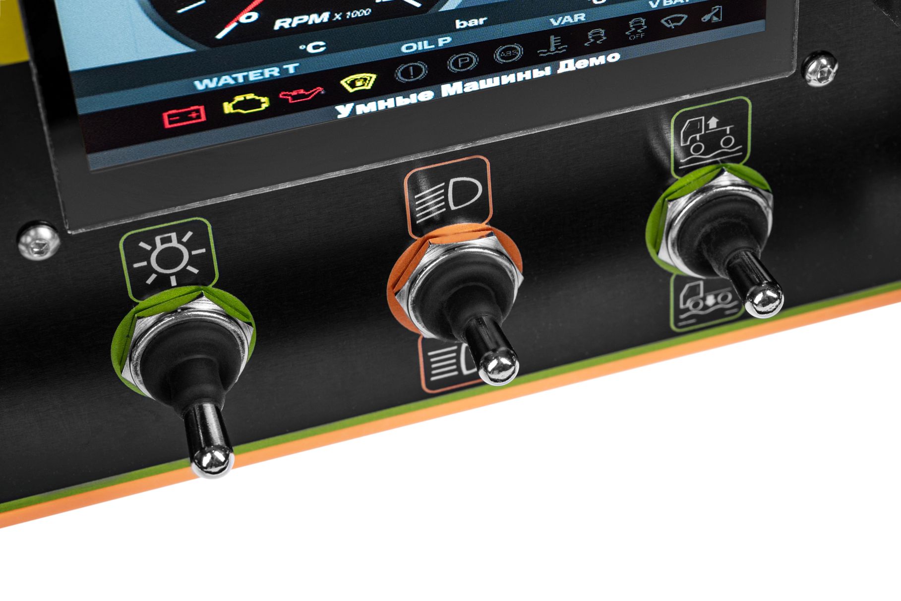 - Индивидуальная комбинация кнопок, тумблеров, поворотных переключателей и других управляющих элементов